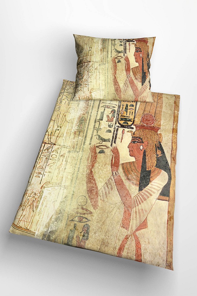 Figurative Kunst des alten Ägyptens, auf den feinen Stoff der Bettwäsche-Garnitur "Egypt" gedruckt. Lassen Sie sich kunstvoll beeindrucken!