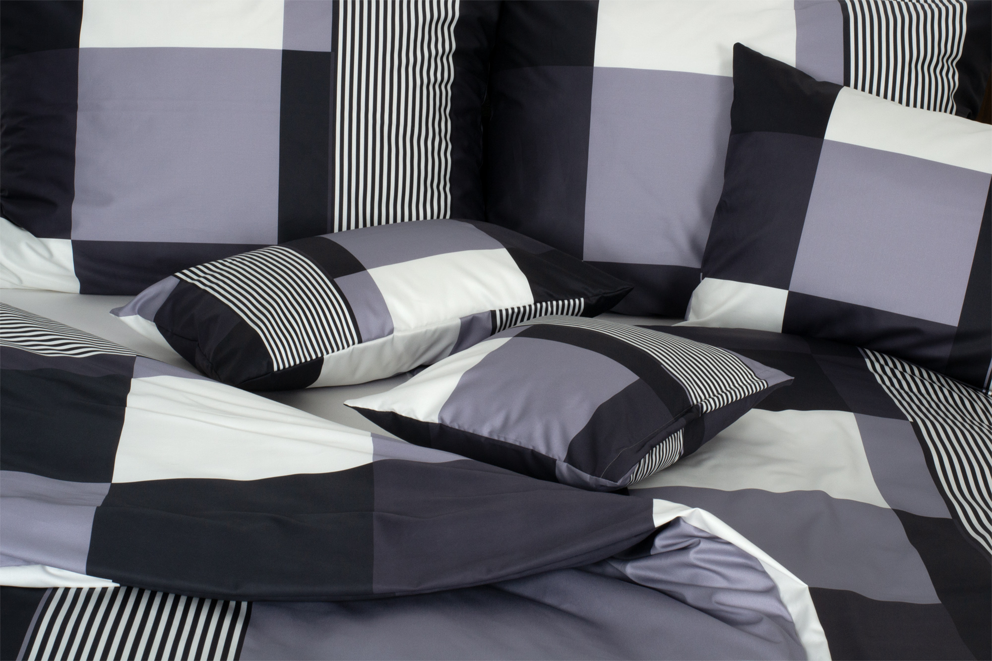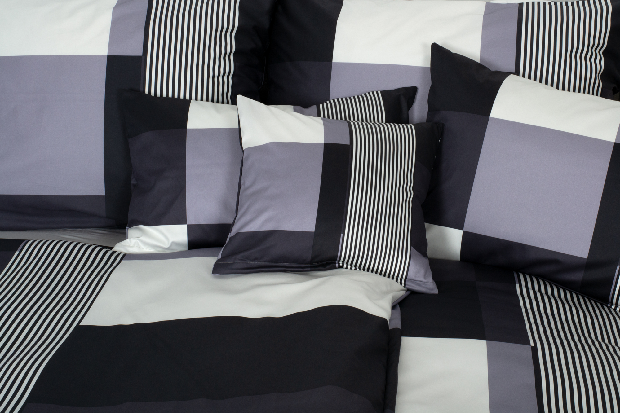 Die elegante karo Bettwäsche in einer Kombination aus Schwarz, Grau und Weiß.