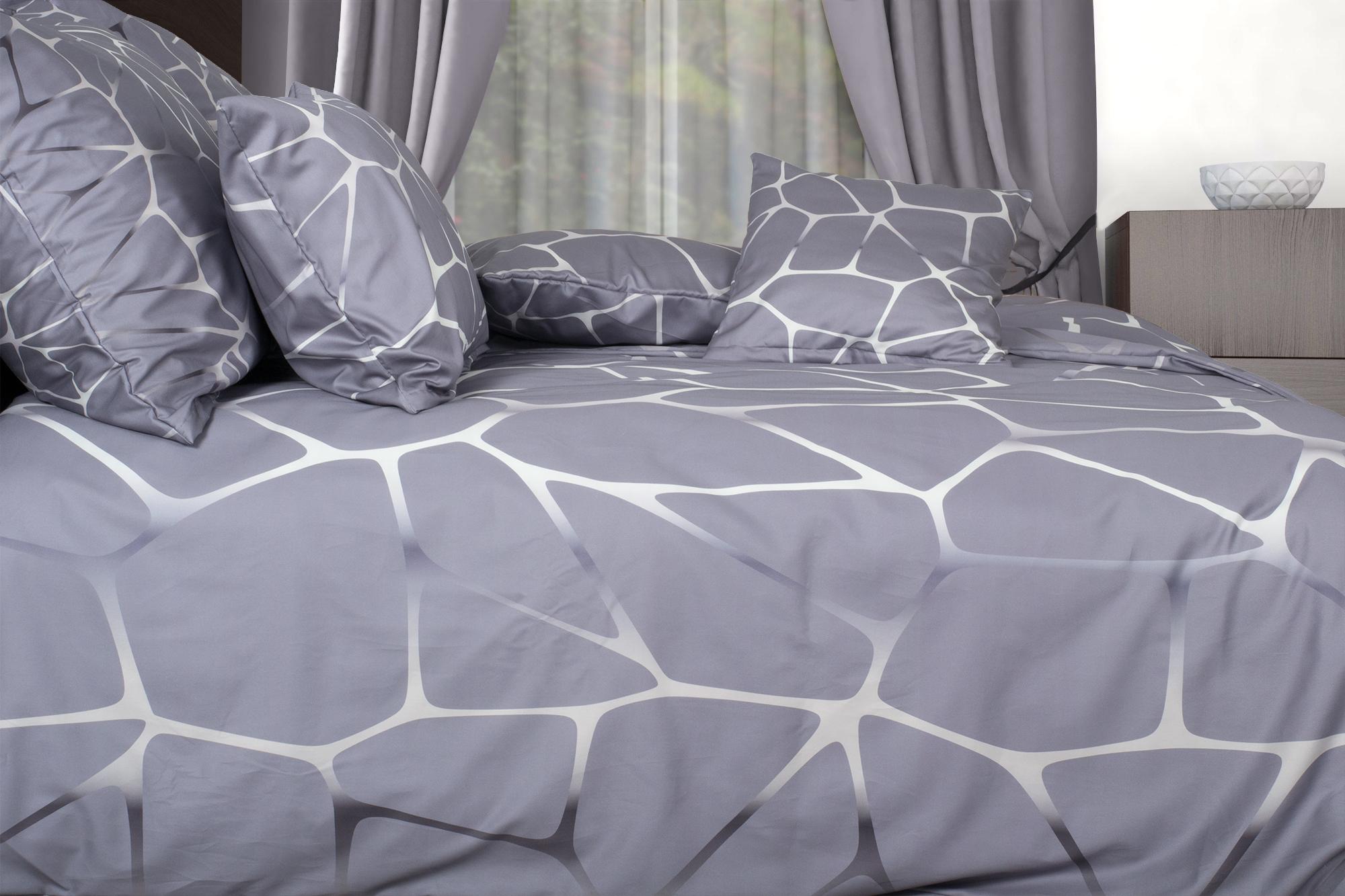 Dunkelgraue Bettwäsche mit verlockenden Glanz aus ungewöhnlichen Linien